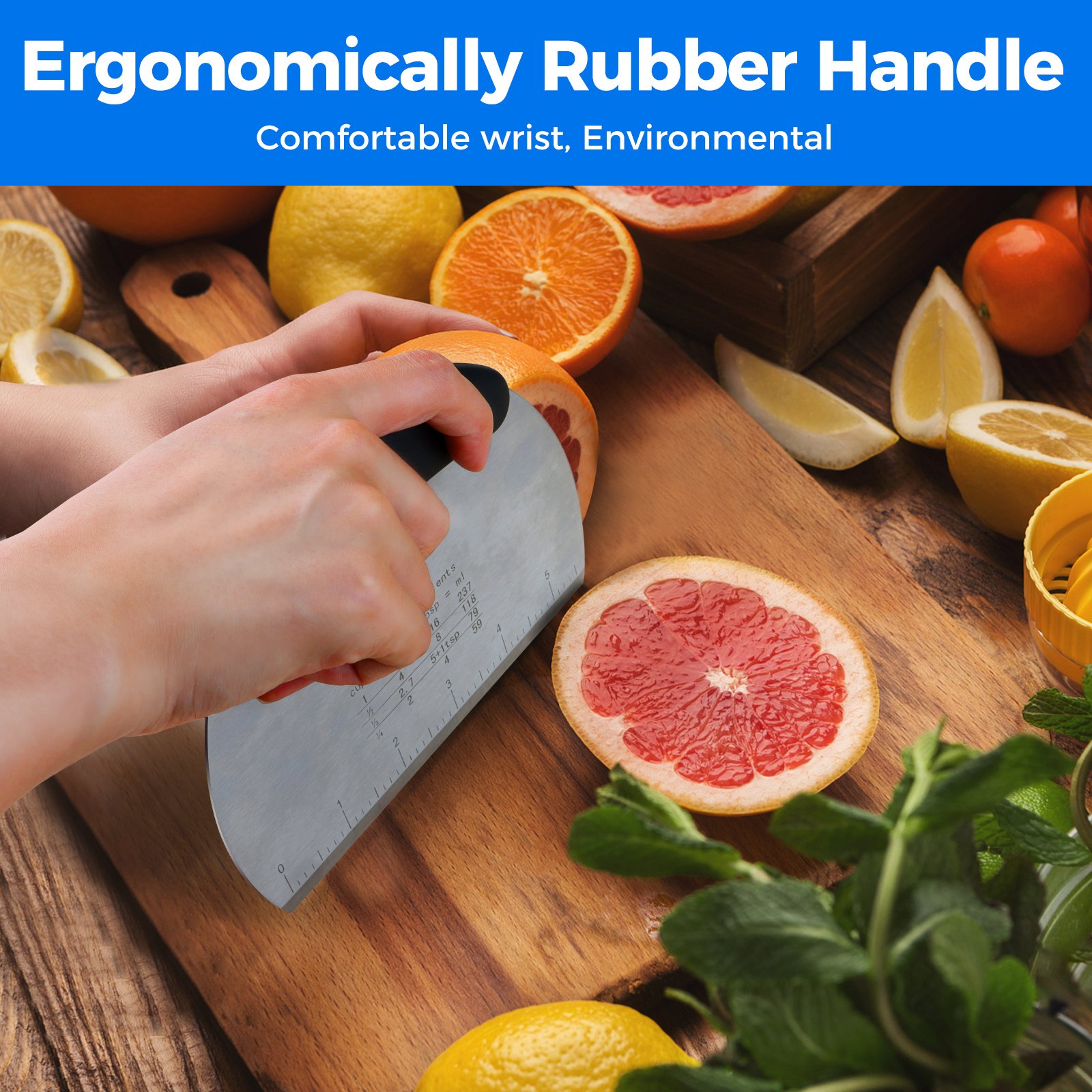 1.Simple and Modern style:Designed to scrape and split bread dough; has a rubber non-slip handle. So it's easy to use and make your baking more effective and No worry about hand and wrist fatigue.