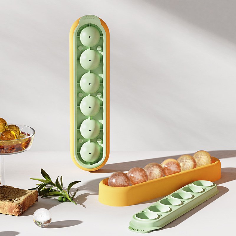 The sphere ice cube mold has 6 cavities and a lid that allow you to make perfectly round ice spheres without spilling a drop of liquid.