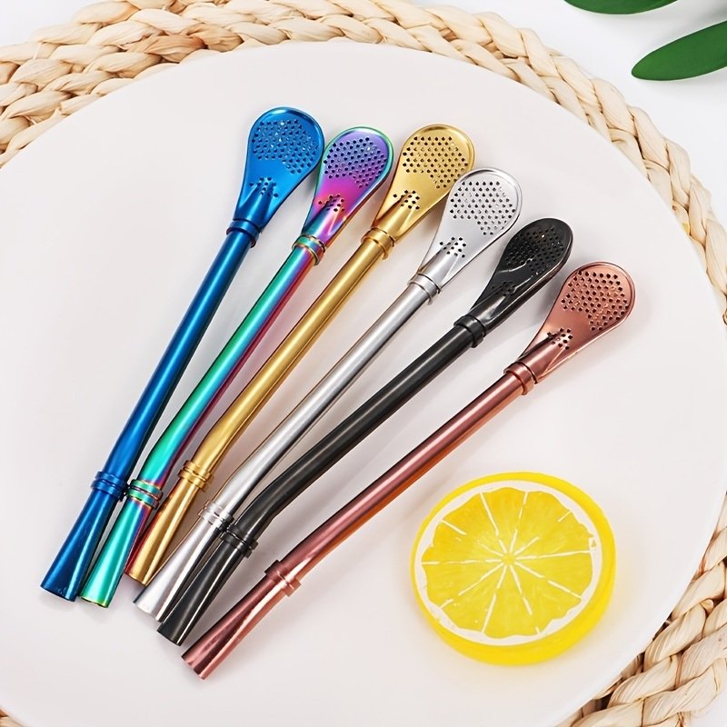 1pc Reusable Stainless Steel Straw - Creative; Multipurpose Spoon for Coffee; Milk; and More!