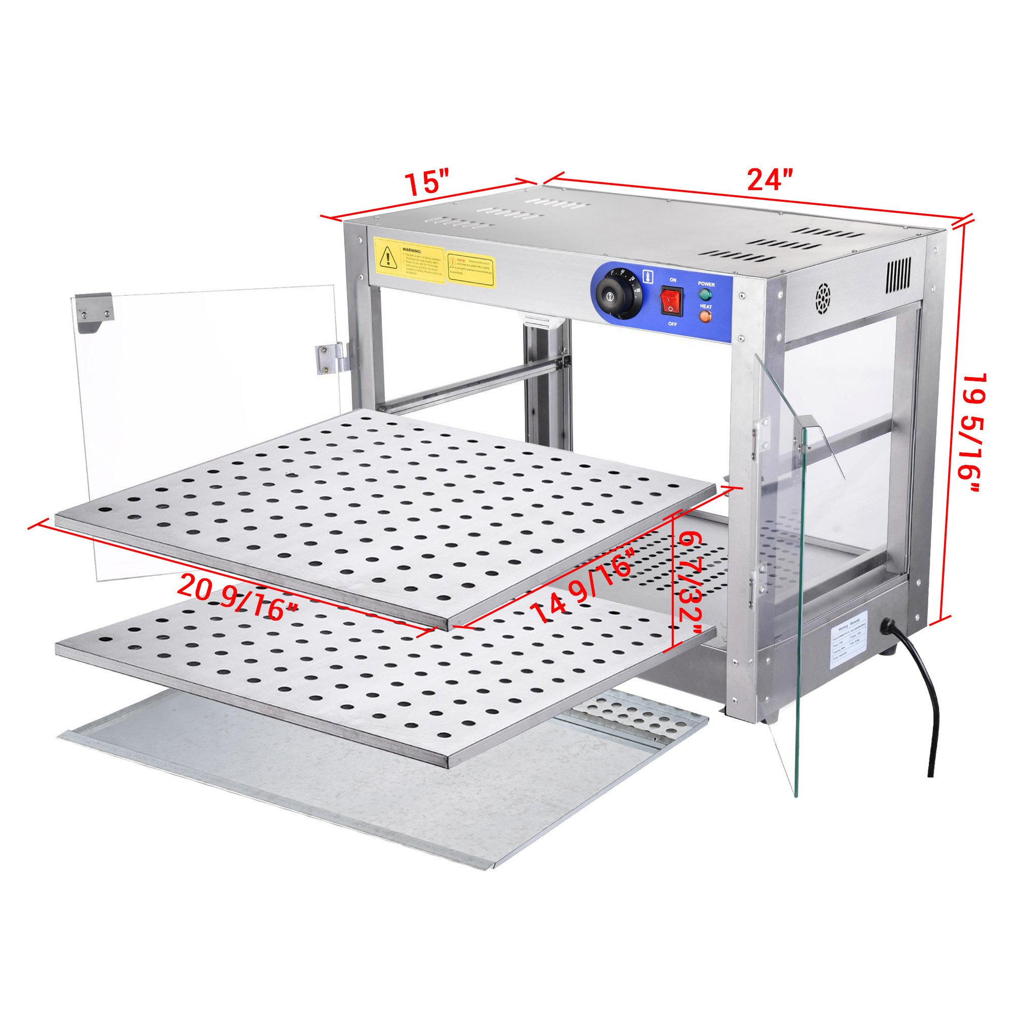 - Keep Warm & Display - 24" x 14 15/16" x 19 5/16" Commercial 2-Tier Food Warmer comes with 2 removable food trays measuring 20 9/16" x 14 9/16" for customizable food storage; maintaining food warmth; displaying or serving fresh and warm food in cafes or restaurants