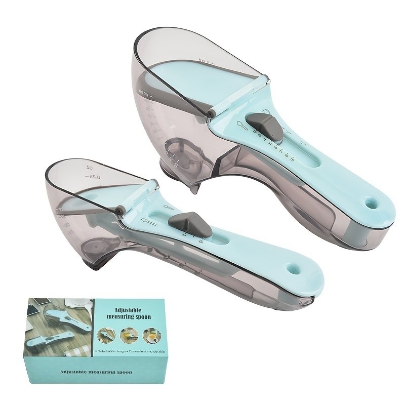 2pcs Adjustable Measuring Cups And Spoons; Plastic Scoop Measuring Cup With Magnetic; For Dry And Liquid Ingredient; Kitchen Tools