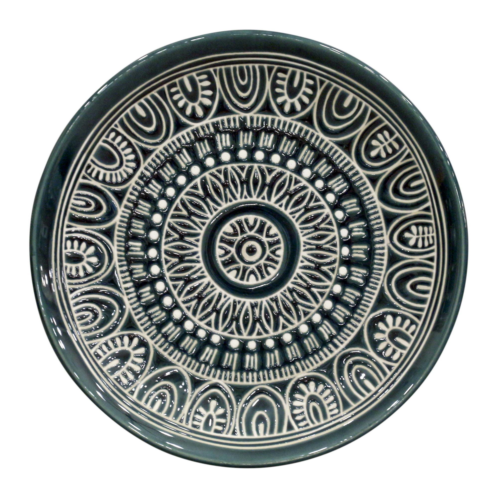 This stunning set features an intricate pattern in raised white ceramic glaze against a smoky teal background that makes even simple meals more exotic. The stoneware dinnerware set features a setting for four diners, including dinner plates, salad plates, and soup/salad bowls. Each piece is breathtakingly detailed, creating an instantly memorable place setting. The stoneware pieces are durably crafted for everyday use. Allowing for effortless transfer from oven to table. The teal dinnerware set is also safe for effortless cleanup. For a complete collection, pair the pieces with Better Homes and Gardens Teal Medallion Mugs and serve items, sold separately.