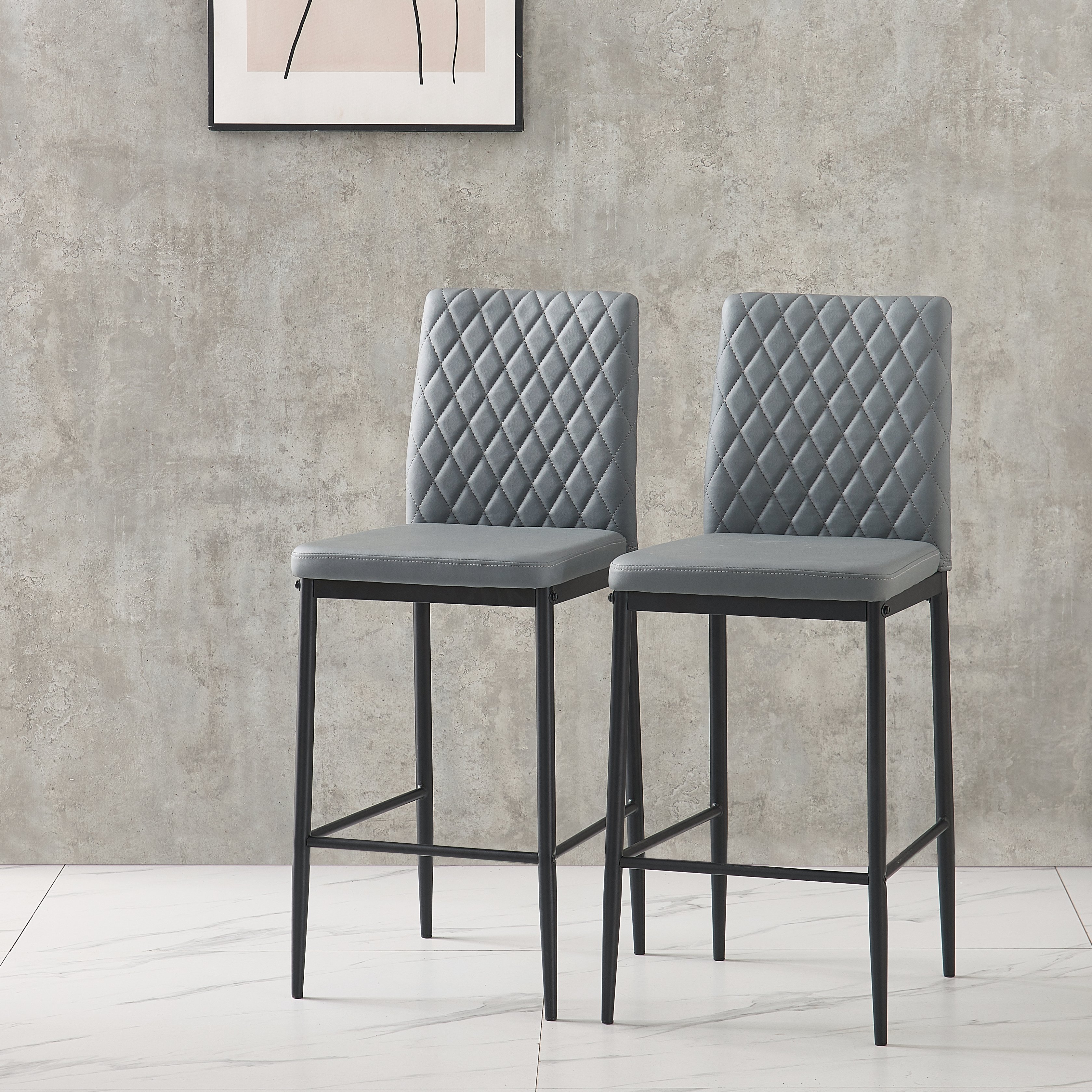 Home > light gray modern simple bar chair, fireproof leather spraying metal pipe, diamond grid pattern, restaurant, family, 2-piece set