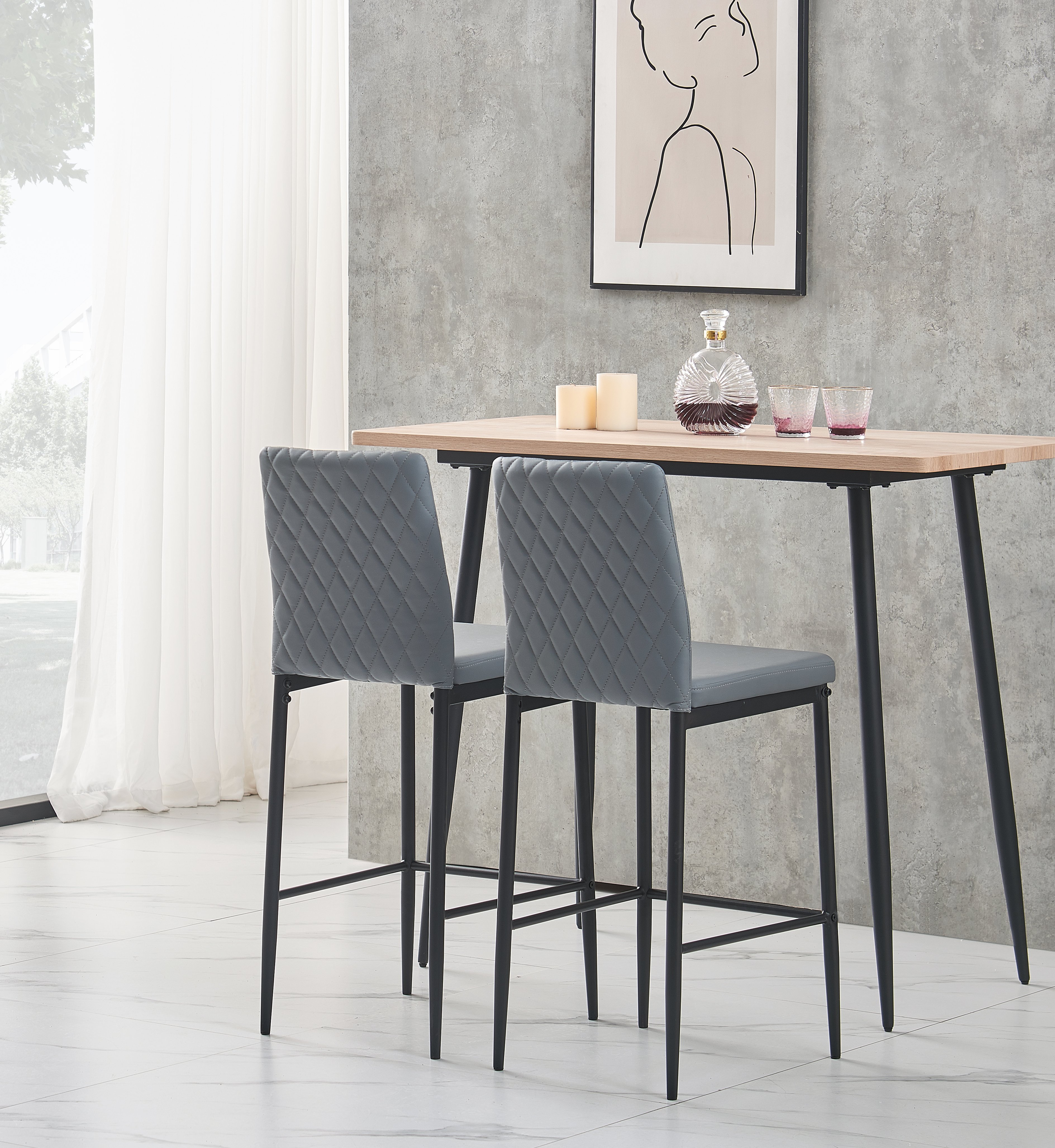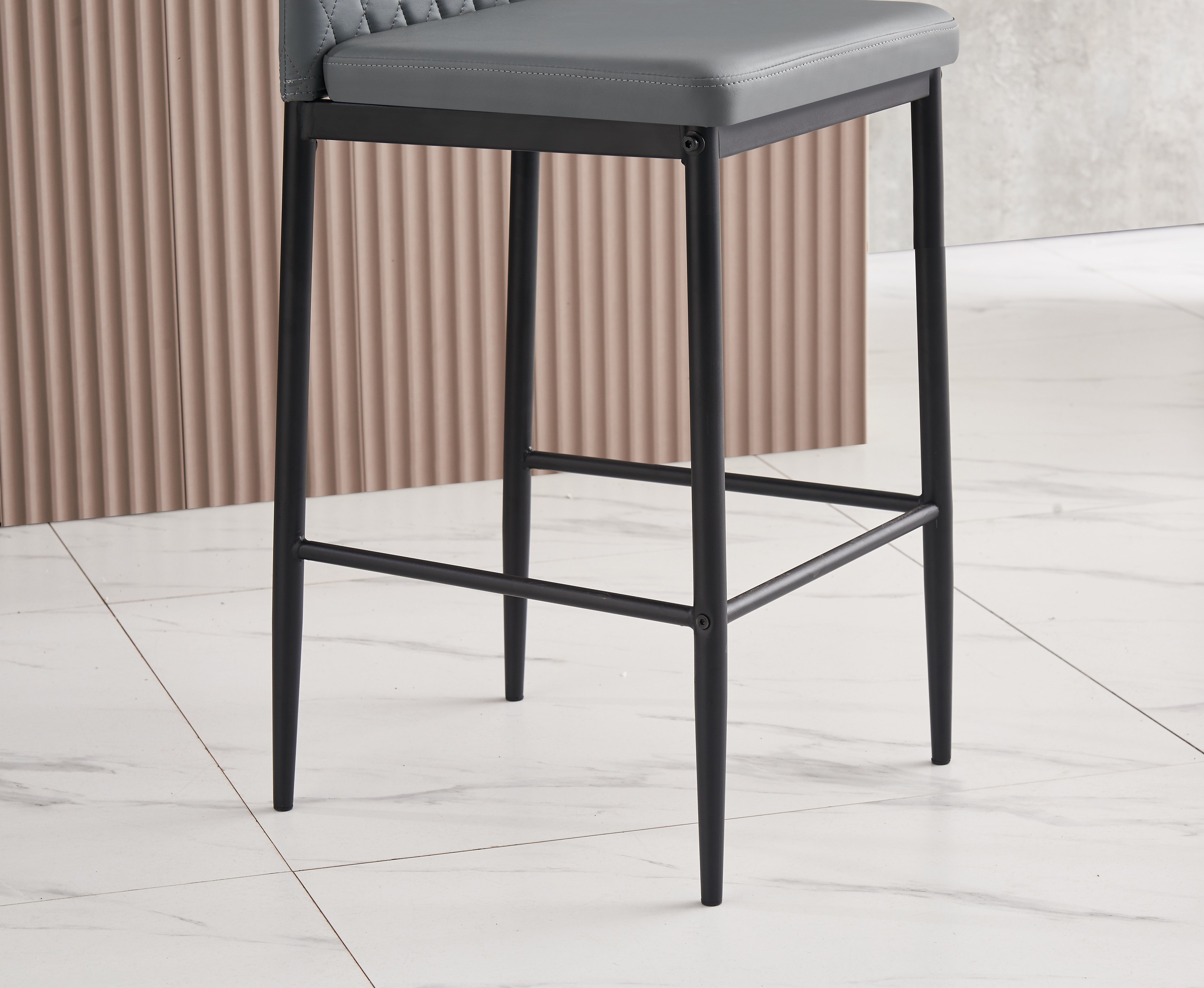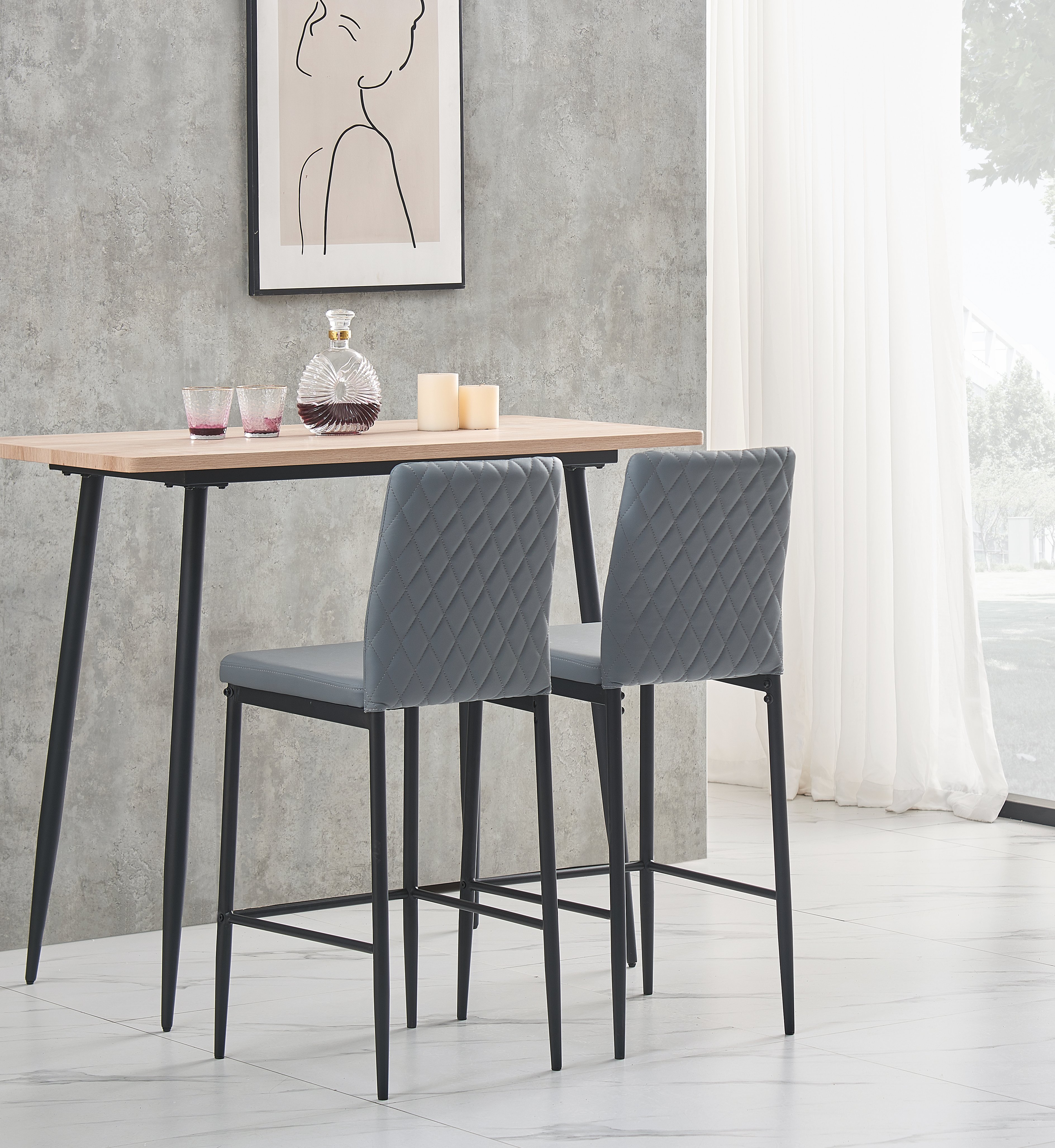 light gray modern simple bar chair, fireproof leather spraying metal pipe, diamond grid pattern, restaurant, family, 2-piece set