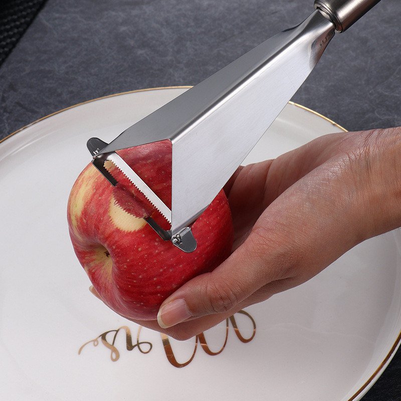 Home > Multifunctional Apple Triangle Push Knife Potato Stainless Steel Fancy Fruit Knife Creative Carving Restaurant Plate Peeling Kni