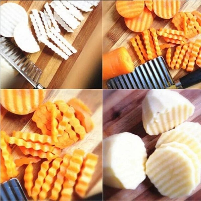 Home > Stainless Steel Potato Chip Wavy Cutter Dough Vegetable Fruit Crinkle Wavy Knife Chopper Cutter French Fry Maker Kitchen Gadgets