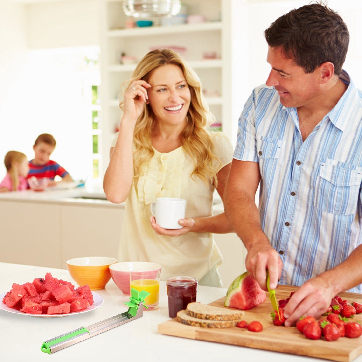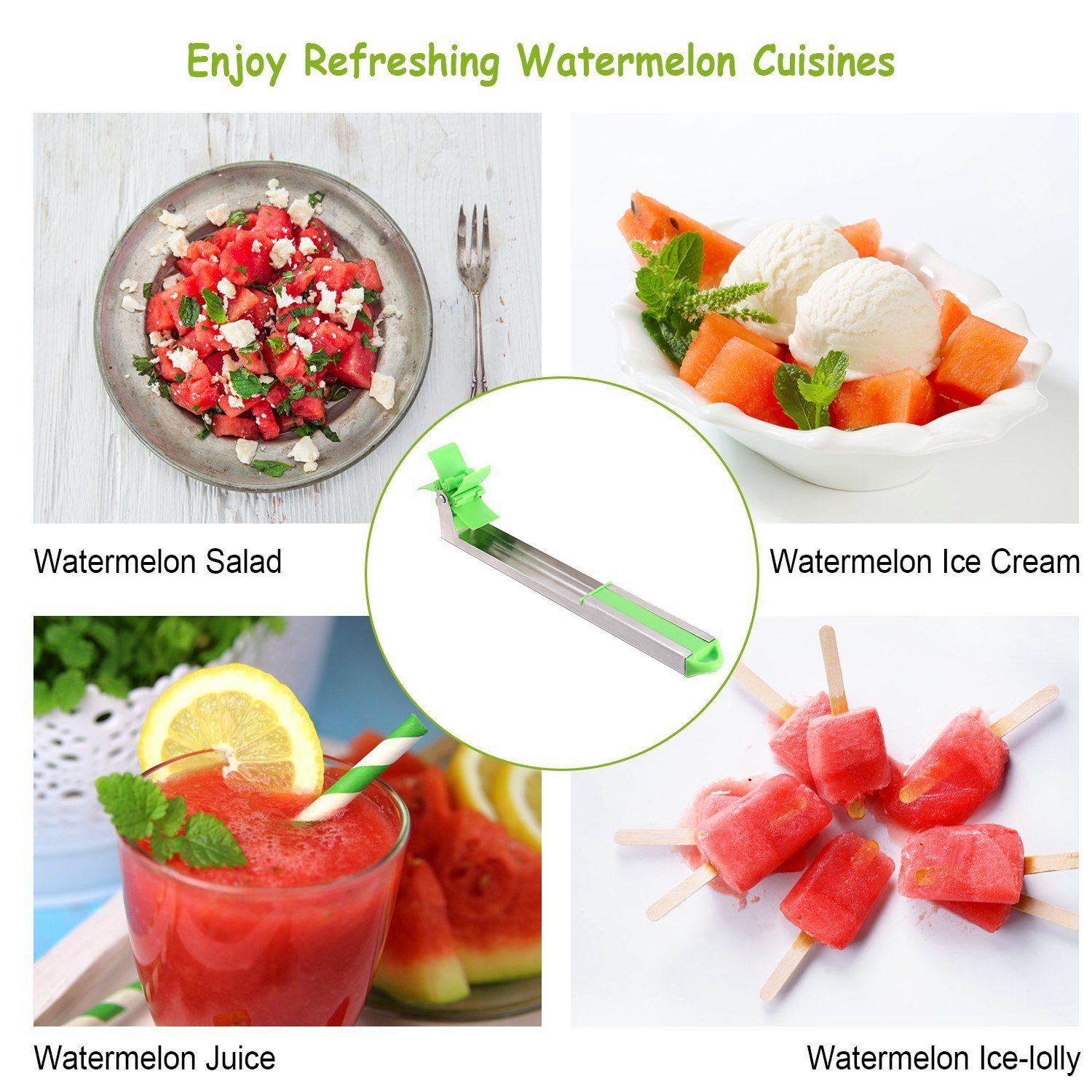 **QUICK & EASY TO USE*:Our watermelon slicer is an easy tool to allow quick cutting and serving of watermelon cubes smoothly and easily. Just push it into watermelon; the watermelon turns into the cubes you imagined. Quickly and effortlessly cuts into the watermelon fruit. Make your own watermelon salad in one minute; enjoy refreshing watermelon cubes in Summer.