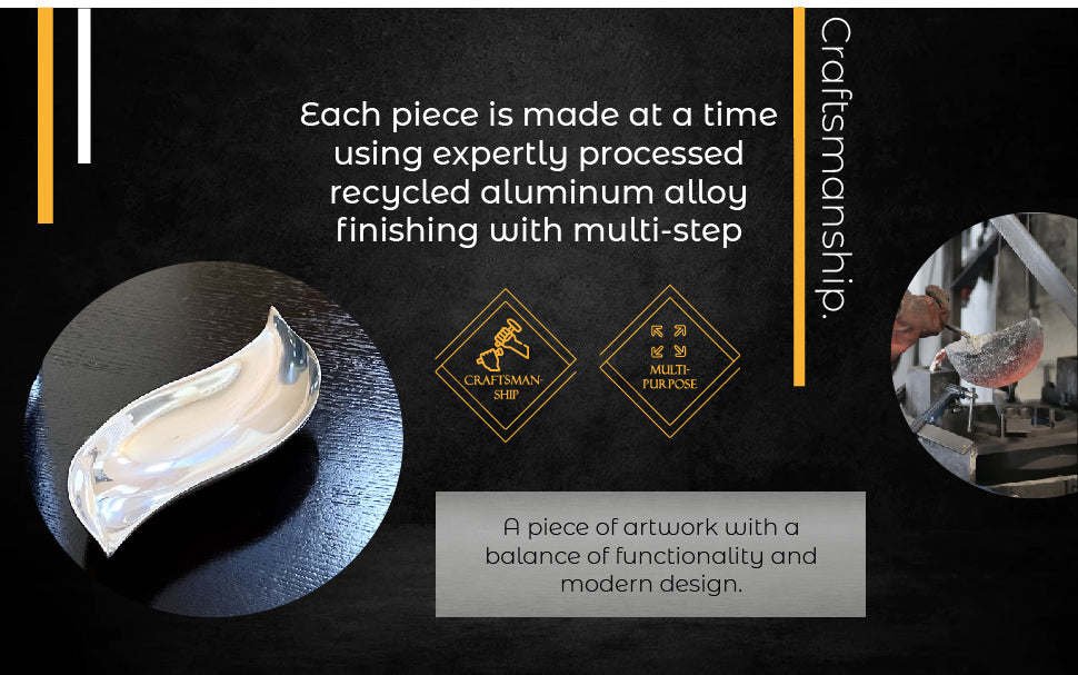 CRAFTSMANSHIP. Each piece is made at a time using expertly processed recycled aluminum alloy finishing with multi-step polishing creating a piece of artwork with a balance of functionality and modern design.