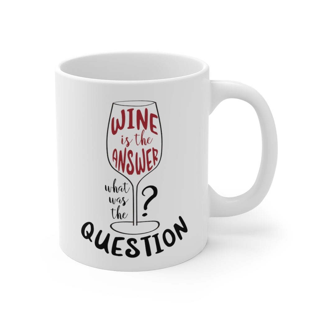 Wine is the Answer, What Was the Question? Mug. Perfect for coffee, tea and hot chocolate, this classic shape white, durable ceramic mug.White ceramic11 ozRounded cornersC-Handle